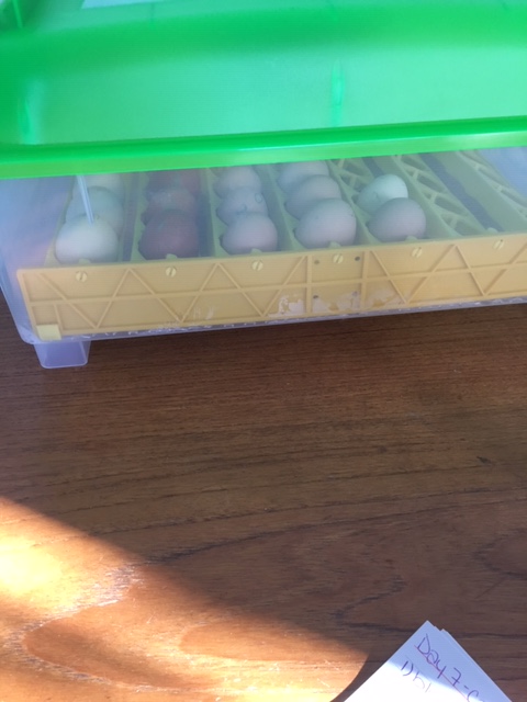 We may receive the new candler tomorrow. If we can see results, I will try to update you. The eggs that are not viable need to be removed from the incubator as they may explode and damage the fertile eggs. That being said, I thought we should keep all the eggs in until we can be sure, even though some seem to not have chicks.