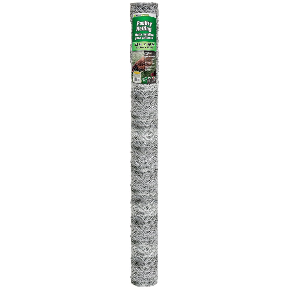 We use Yardgard Poultry Netting. I like the rolls that come in 4 feet height by 50 feet long. I run one roll parallel to the ground and the other on top of that one. That way, I will have 1 foot of netting buried, use 1 foot to weave together with another layer and staple the upper edge to the frame. That will leave me with about a 6 foot tall enclosure.
