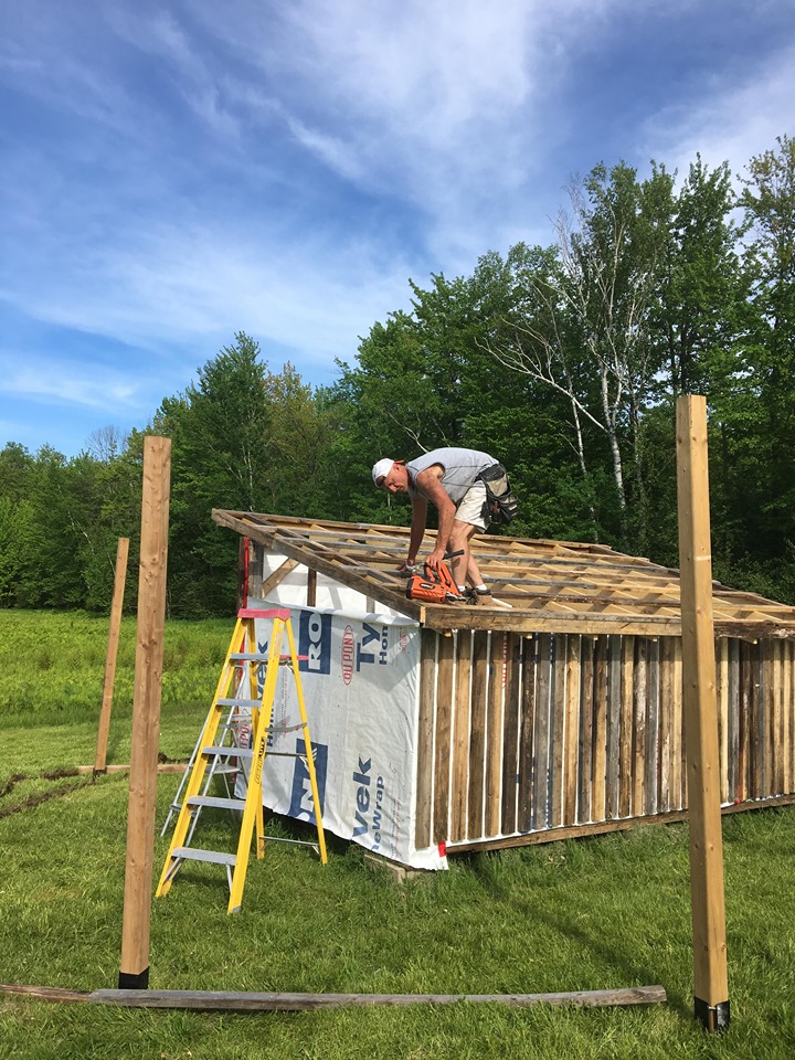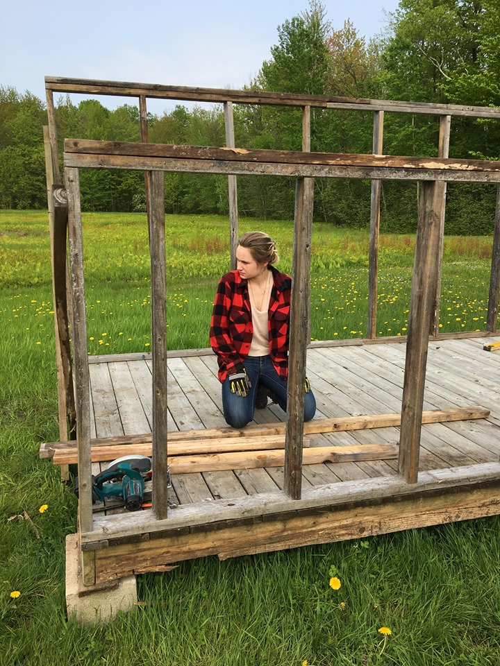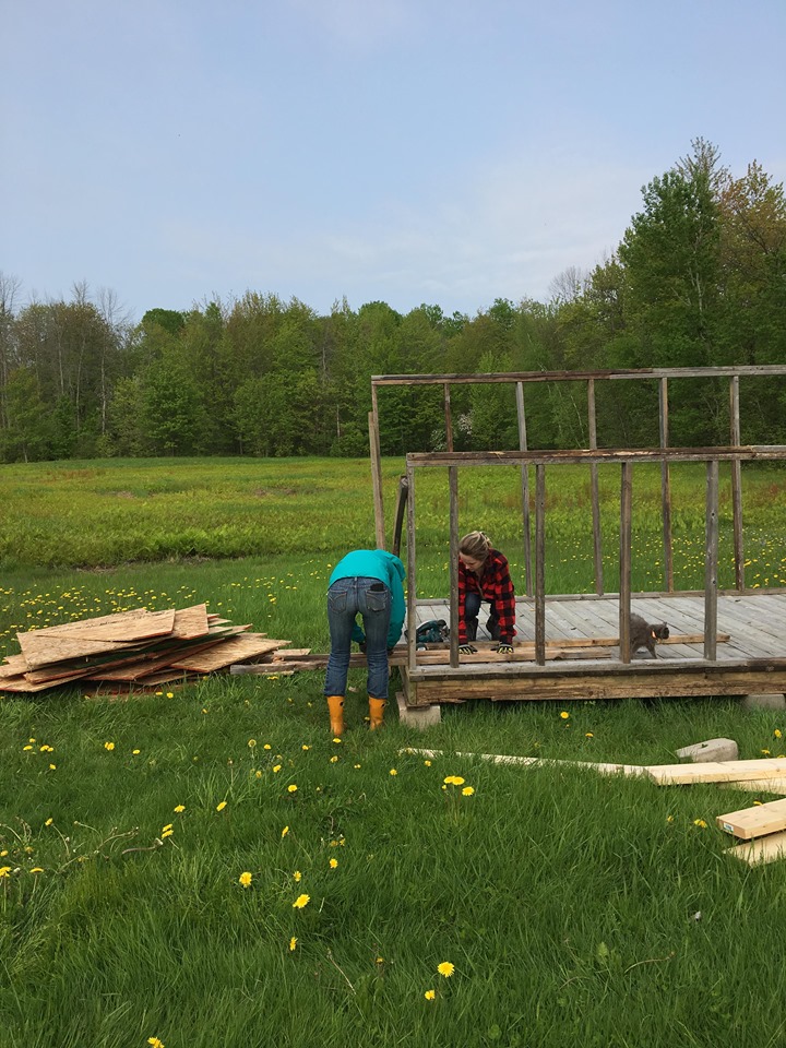Yesterday was an incredibly beautiful day. I will not say it was TOO warm. It was perfect. But the work we were all doing required lots of hydration. We are all desperate to have the chickens outside to ‘free range’. They are old enough and getting a little cramped in the barn stall. So with the help of all our boys, Alex, Zach and Brian, we have spent the last few weekends trying to build the chicken coop. Again, we are all limited for time so it’s taking a bit longer than we hoped. BUT! We have been able to acquire so much of the material for free! It’s good to know people who know people who know people…