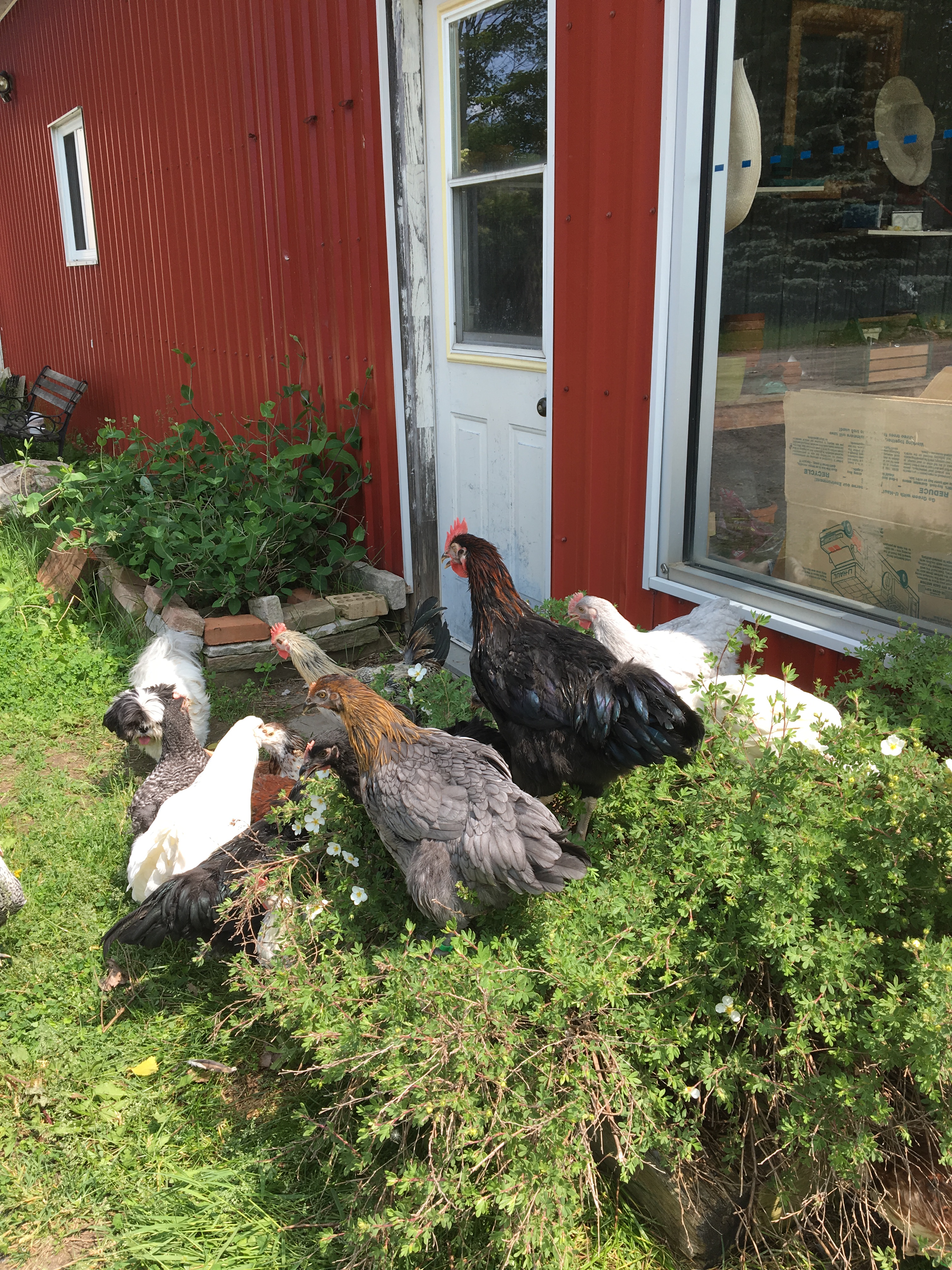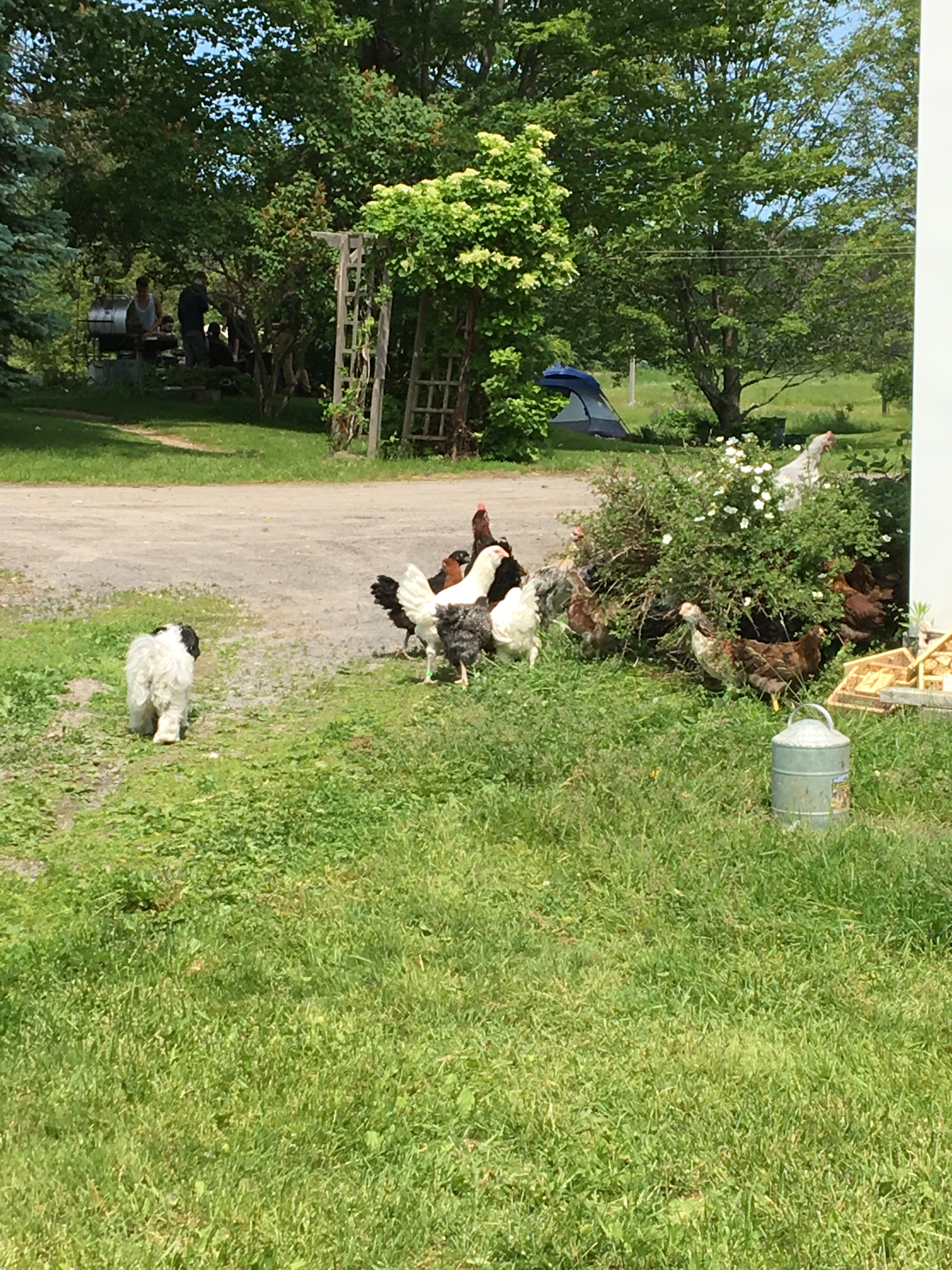As for the chickens, well that’s another story! We were four trying to catch them in their pen to bring them outside. Of course they had no idea what to expect so they were panicked. Once outside, never having felt grass under their feet, or sun on their heads, they were all stunned and pretty funny looking! Most just squatted for a while. We then had to try to get them out of direct sun, as they didn’t seem to understand what free range meant. We put them in the shade, but then they wouldn’t explore. Just lay there. So it was a weird thing to see. A bunch of immobile chickens. By the end of the day, some had started wondering around and pecking at the ground.