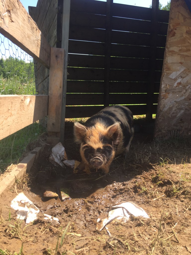 In other – sadder – news, Thursday was a hard day on the farm. We lost one of our forever animals. Our male pig named Pua. After noticing that he was in extreme respiratory distress, we called a vet over to come see him. After attempts to help him, he had what was most likely a heart attack brought on by heart failure mixed with the stress of having people poke and prod him. While we were very sad to see him go, if this was in fact heart failure, he would have eventually succumb to this disease in the end, and probably with more prolonged pain and suffering.