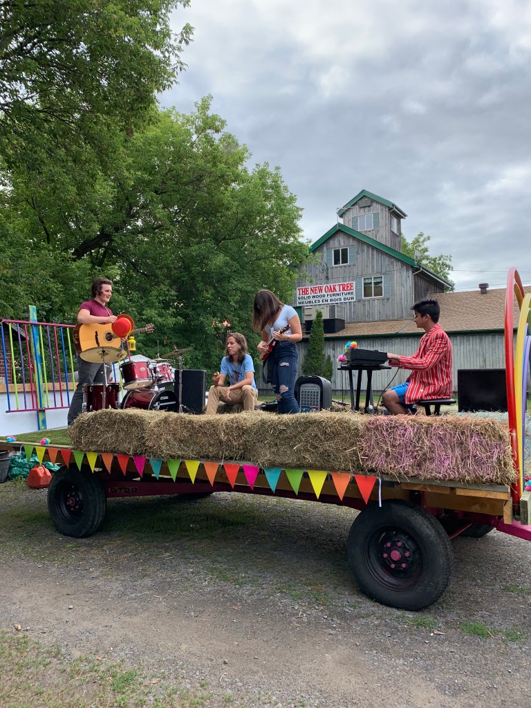 The girls and I had lots of help which just reminded us how important community spirit can be. So thank you to the kids in the band, Aidan, Alex, Rohit and Amy. Also thank you to Jason Camm for using his Cammstruction truck to pull the wagon in the parade. Johnny, thanks for keeping things light and of course, Brian who found the hay wagon, mentioned we should be entering the parade and helped us build the thing!