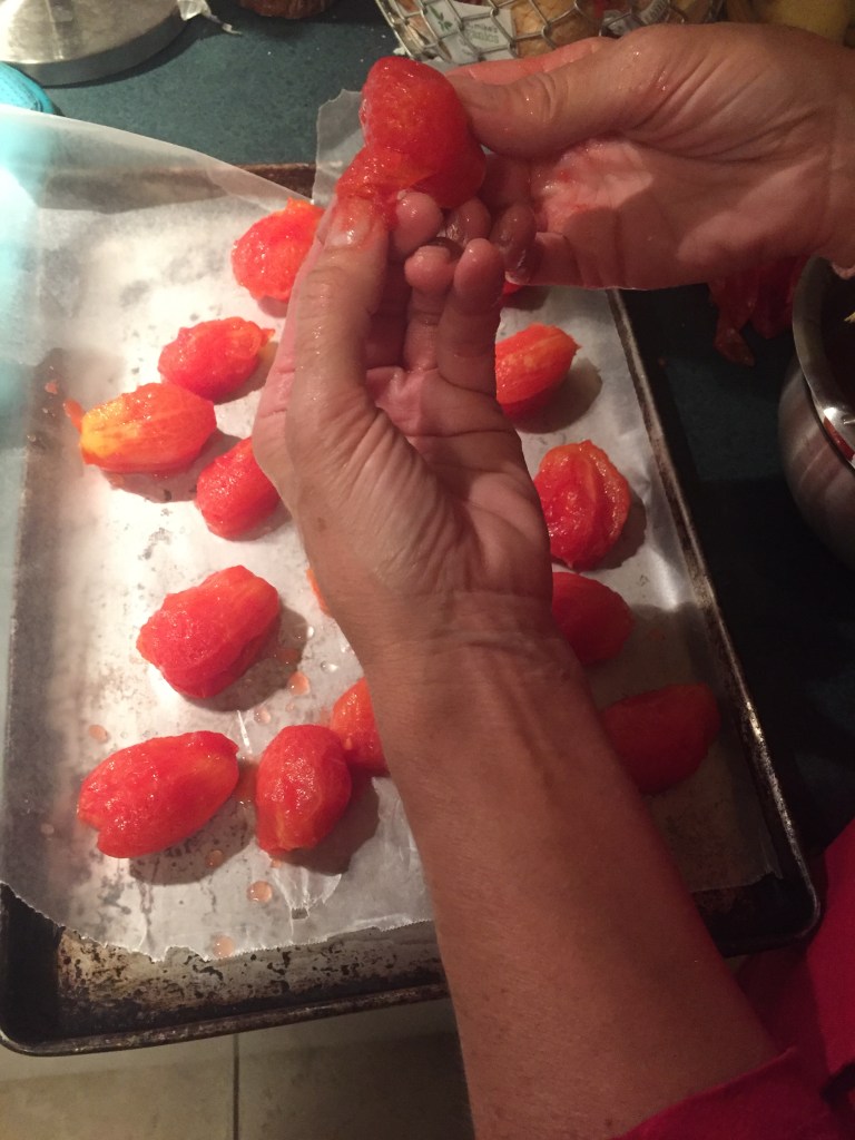 Then we’ve had Roma tomatoes ready to freeze. So every few days, I parboil them, peel, freeze, then transfer to freezer safe containers. I try to make enough each time for one full recipe of either Italian sauce, chili or whatever I decide to make with them.